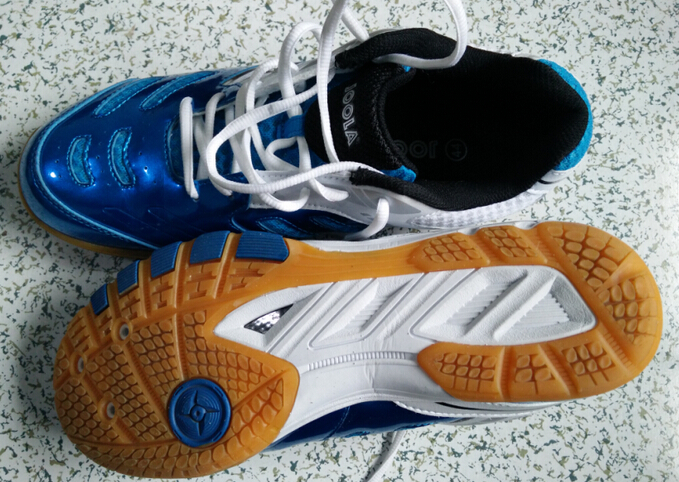 JOOLA劍龍 乒乓球鞋應(yīng)該和尤拉鳳凰和變色龍不是一個廠家所生產(chǎn)的,鞋楦的選擇更加合理一些,包裹性可以說優(yōu)秀,穿著舒適度非常好,鞋舌的兩端有繃帶固定,雖說只是一個小改進,可是到實際穿著體驗上得到的提升真的不是一點點。實際穿著時間約為10天,鞋面的折痕很淺,鞋子的面料柔軟度很高。鞋帶就是普通的白色鞋帶,不帶有JOOLA的LOGO,這里提個小建議,JOOLA是否可以考慮提供雙色鞋帶,比如一副白色一副藍色。