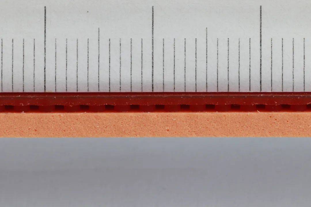 擅長(zhǎng)在膠皮上做文章的729,這次用了一項(xiàng)“雙孔徑”海綿技術(shù),做到了一箭三雕。729將奔騰3的海綿命名為“暴風(fēng)50”,屬于高密度海綿。一般專業(yè)膠皮的海綿,發(fā)泡孔徑都非常均勻,因?yàn)楦鶆虻暮>d發(fā)泡孔徑可以確保擁有更好的手感一致性,但奔騰3卻一改常態(tài),開創(chuàng)了一種新模式:在每個(gè)大直徑海綿孔徑的孔壁上,去分布多個(gè)1:10等比縮小的小海綿孔,即一個(gè)大孔周圍分布著多個(gè)十分之一大小的小孔,是一種全新的海綿形態(tài)。如果將傳統(tǒng)海綿大小差不多的孔徑定位為“單孔徑”結(jié)構(gòu),那729的這種新海綿即為“雙孔徑”結(jié)構(gòu)。此結(jié)構(gòu)十分考驗(yàn)橡膠海綿的發(fā)泡工藝,729花了三年時(shí)間才攻克難關(guān)。