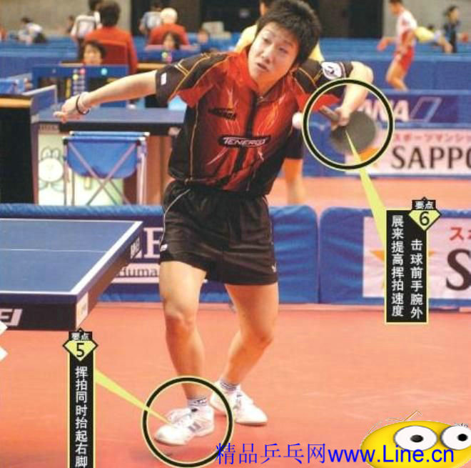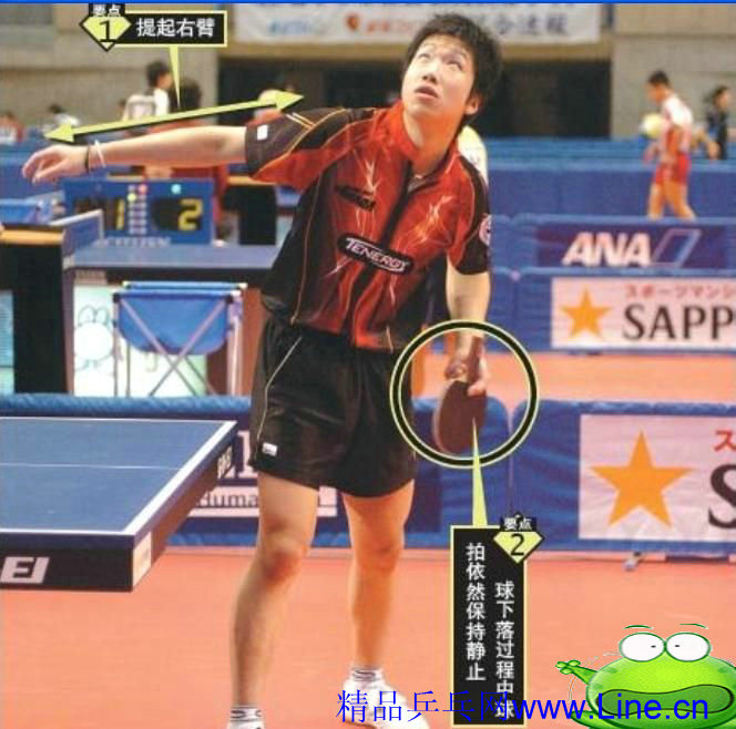 水谷隼發(fā)球動作的最大特點是“引拍很晚”。球拋起后持拍手較為放松,球到達最高點開始下落卻仍然不做任何動作,直到球落至頭頂高度時突然啟動,前臂手腕加速發(fā)力,一氣呵成。