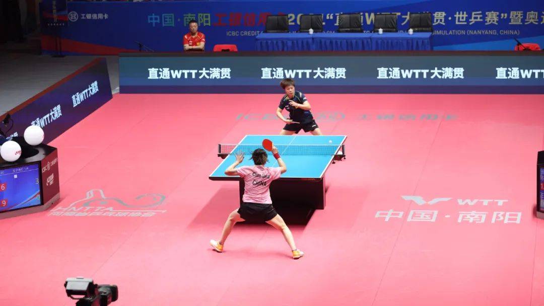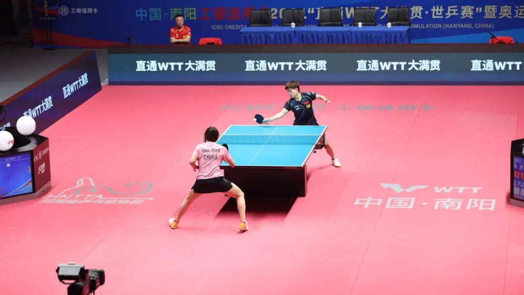 其實(shí)從第二板被對(duì)方用反手變直線開始,王藝迪就已經(jīng)發(fā)覺了局勢(shì)的被動(dòng),但她的正手回球只是為了求穩(wěn)而護(hù)了一條斜線,沒有強(qiáng)行逼著自己“以直對(duì)直”,以至于把球送到了陳夢(mèng)的手底下,而且暴露了自己的反手大空當(dāng)。雖然她在下一板的回防速度已經(jīng)很快了,但也很難再頂住對(duì)方足夠狠的直線殺板。