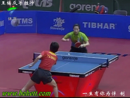 王楠反手拉沖球
