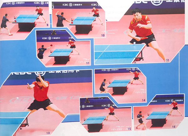 本期名將乒乓球技術(shù)解析的主題是“化被動為主動”,顧名思義,內(nèi)容是運動員在面對不利局面時如何化險為美的,在第一組圖中,馬龍在接發(fā)球輪次對對方的發(fā)球質(zhì)量估計不足,造成回球冒高,面對徐晨皓的重重挑打,他憑借靈活的應(yīng)變見招拆招,拿下一分,展現(xiàn)了雄厚的手上控球能力和被動相持能力。