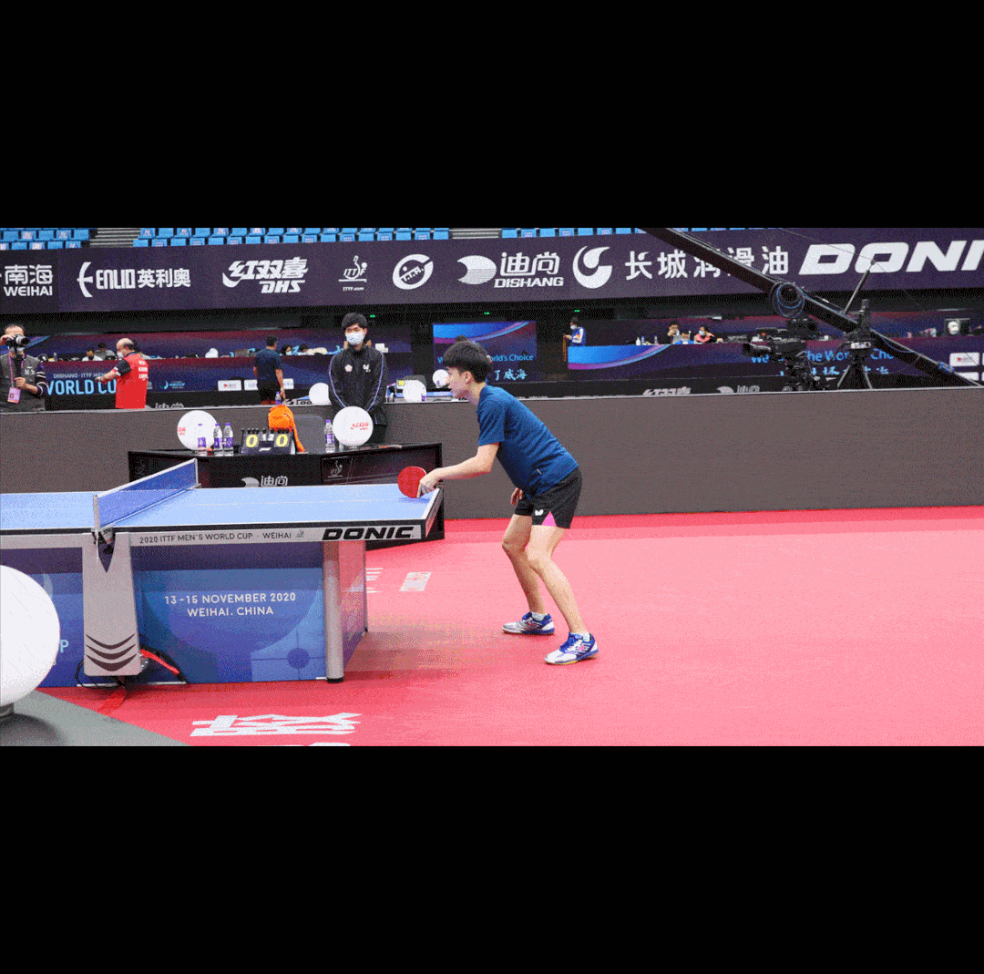對方頂住了林昀儒的強勢一擊,同時也再次對他形成反制,試圖通過快速的回球和刁鉆的角度抑制林昀儒的側(cè)身連續(xù)進攻。林昀儒只能再次見招拆招,他跟住來球速度及時站住位置并調(diào)整板形,改用反手按壓的技術(shù)進行銜接。 擊球時,林昀儒充分引手借力發(fā)力,主動迎著來球的上升點進行高壓封堵,并通過板形調(diào)節(jié)巧打直線落點,通過銜接速度和落點變化壓制對手,彌補擊球質(zhì)量的不足。相比于上一板的暴力反拉而言,這板球的反制打得更加輕巧,效果也非常好,在不同節(jié)奏的對抗后終于拿到了分數(shù)。