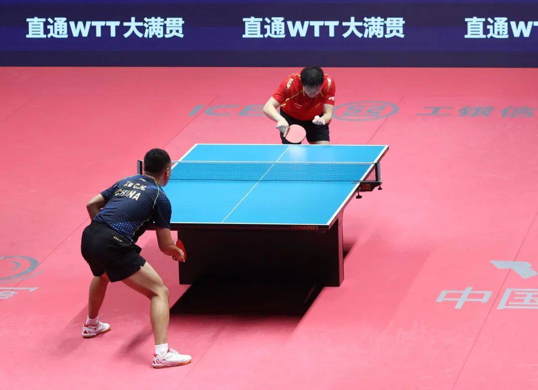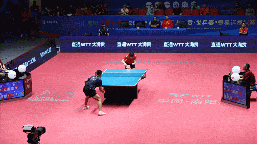 徐晨皓在準(zhǔn)備不充分的情況下,吃了馬龍發(fā)出的右側(cè)上旋,回擺了一板半高球到馬龍的中路短球位置。馬龍面對來球非常沉穩(wěn),沒有急于求成,他隨球側(cè)身放慢節(jié)奏,盯準(zhǔn)來球的長短,完成了精確的找球調(diào)節(jié)。同時,他看著對方慌亂的跑動方向,決定借機(jī)打出時間差,繼續(xù)沖拉對方正手大角的落點。馬龍的動作大開大合,擊球瞬間迅速調(diào)整板形,卷沖出斜線的刁鉆角度到對方的正手空當(dāng),通過擊球質(zhì)量一擊致命,展現(xiàn)了超一流的正手得分能力。